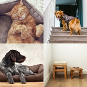 Avoiding stairs whenever possible is important for dogs with arthritis. If you live in a multi-storey home, consider installing ramps or pet-friendly stair aids to make it easier for your dog to navigate. You can also help them by preventing slips on floors by using non-slip rugs or rug tape, and ensuring food and water bowls are at a comfortable height to avoid bending and stretching. Cats will benefit from low-sided litter boxes in multiple locations to reduce travel as well as ramps by furniture to help them reach their favourite spots.